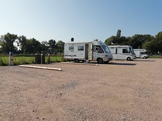 Am Ortsrand von Sande bietet der Platz 20 befestigte Stellflächen auf Schotter. Für alle Plätze stehen Stromanschlüsse zur Verfügung. Ver- und Entsorgung ist möglich. Eine Toilette findet man im Gebäude vom Kanuverleih.