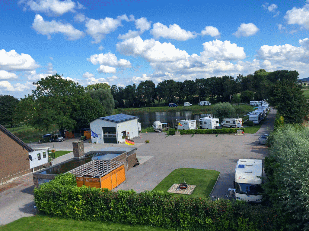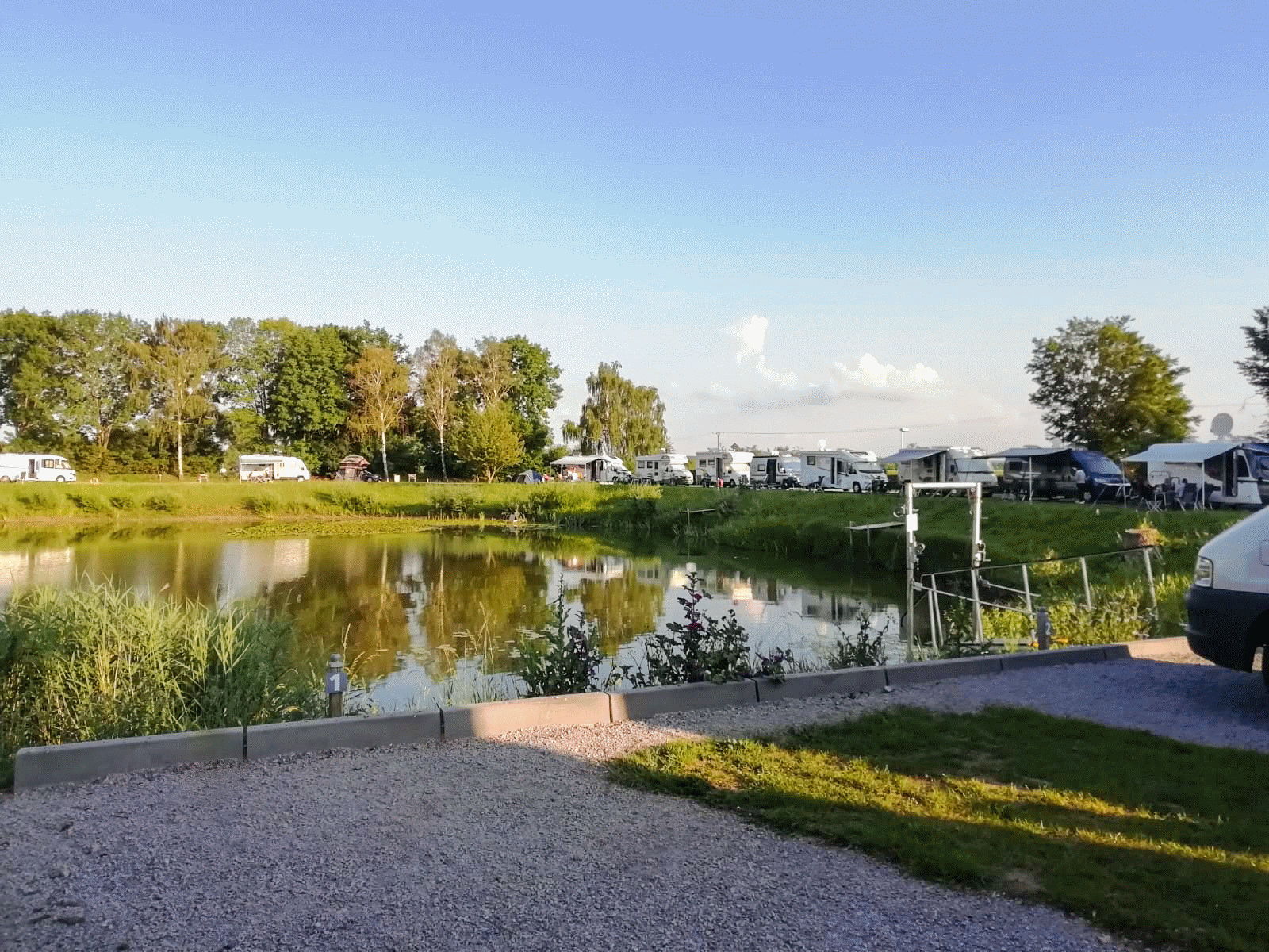 Die Wohnmobil-Stellplätze sind befestigt, liegen direkt am Wasser und sind alle mit Stromanschlüssen ausgerüstet.