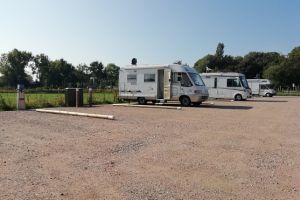Am Ortsrand von Sande bietet der Platz 20 befestigte Stellflächen auf Schotter. Für alle Plätze stehen Stromanschlüsse zur Verfügung. Ver- und Entsorgung ist möglich. Eine Toilette findet man im Gebäude vom Kanuverleih.