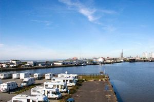 47 Stellflächen 5 m x 8 m mit Stromanschluss bietet der Stellplatz am Fischkai. Eine zentrale Ver- und Entsorgungsstation ist vorhanden. Im Servicehaus findet man eine Toilette und Dusche, den Zahlautomaten und eine kleine Rezeption. Informationen gibt es ebenso in der Rezeption, die von 8:00 bis 13:00 Uhr besetzt ist.