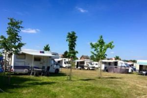 Nur wenige Meter vom Badesee, entfernt bietet der Zelt- und Wohnmobilplatz eine 12.000 qm² große Rasenfläche mit 20 reinen Wohnmobilplätzen und weiteren ca. 70 Parzellen, die gemischt genutzt werden.