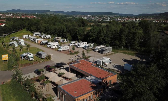 Die 49 großzügigen Stellflächen auf befestigtem Untergrund bieten Platz für Wohnmobile und Wohnwagen. Moderne und sehr saubere Sanitäranlagen stehen zur Verfügung. Hilfe und Tipps findet man in der Rezeption, ebenso morgens frische Brötchen. In der Gaststätte mit Biergarten werden schwäbische Leckereien, hervorragende Weine und regionale Biersorten angeboten.