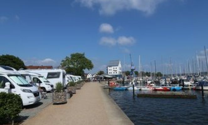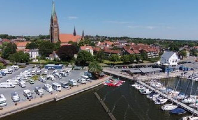 Am Stadthafen in Schleswig finden Reisemobilisten 45 befestigte Stellflächen mit Stromanschlüssen. Die Ver- und Entsorgung erfolgt auf einem zentralen Platz. Toiletten, Duschen und W-Lan werden angeboten. Der Platz ist barrierefrei.