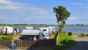 Vom Platz hat man einen tollen Blick über die Eider. Unmittelbar daneben befindet sich ein Freibad. Gleich hinter dem Platz findet man ein kleines, knietiefes Wasserbecken mit Liegewiese. Das Zentrum und der Hafen sind ca. 1 km entfernt. Im Zentrum und am Hafen laden Restaurants und Cafés zum Verweilen ein. Einen Discounter findet man ebenfalls in ca. 1 km Entfernung. Bis zum Supermarkt sind es ca. 3 km. Im Hafen werden Schiffsausflüge angeboten. Der Platz eignet sich hervorragend als Ausgangspunkt für Fahrradtouren.