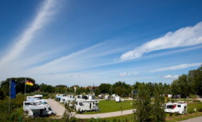 65 Reisemobile finden auf befestigten und geschotterten Stellflächen am Ortsrand von Friedrichstatt Platz. Die Ver- und Entsorgungsstation ist überdacht. Auf allen Plätzen stehen Stromanschlüsse zur Verfügung. Toilette, Duschen und Informationsmaterial findet man in Serviceraum. Die Zahlung erfolgt am Automaten. Das Gelände ist durch Schranken gesichert.