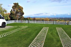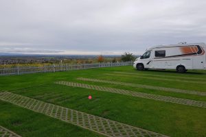 Der Stellplatz ist besonders für Reisemobile angelegt und bietet einen befestigten, teils mit Rasengitter oder Rasen ausgelegten Untergrund.