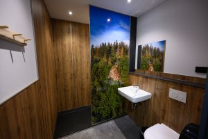 Wassergebundene Decke, Stromanschluss auf jedem Platz und Frischwasser in jeder Rotunde, Grauwasserentsorgungsstation, komfortable Themenbäder
